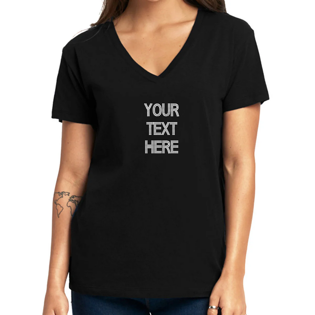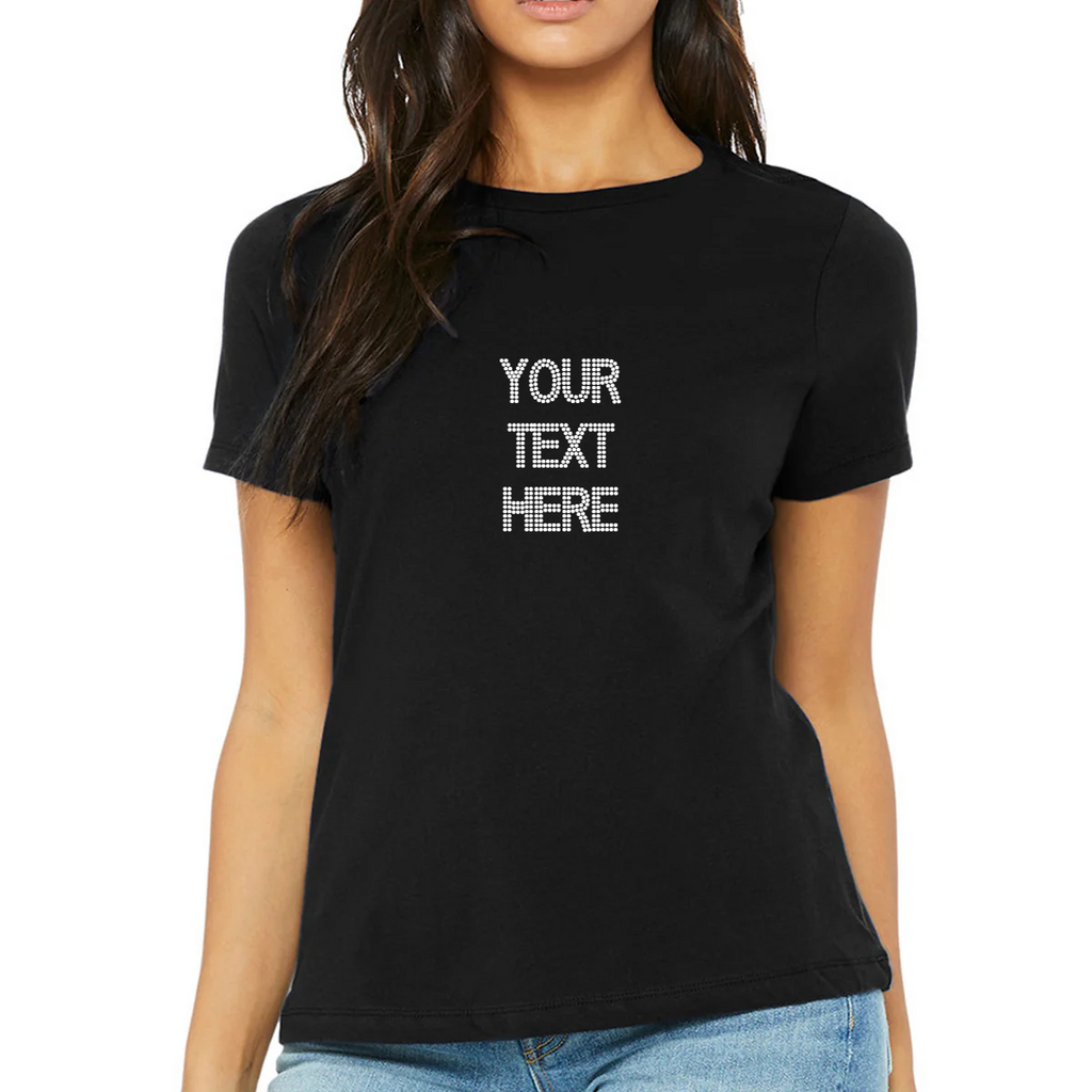 Custom Women's T-Shirt - Summer DTF Print with Rhinestone Accents & Rhinestone Custom Text
