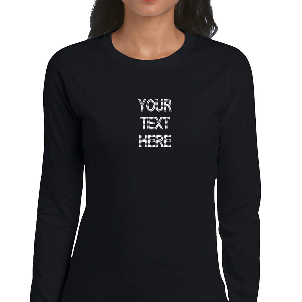 Ver todos os detalhesCustom Women’s T-Shirt – Awareness Personalized Rhinestone Design and Text
