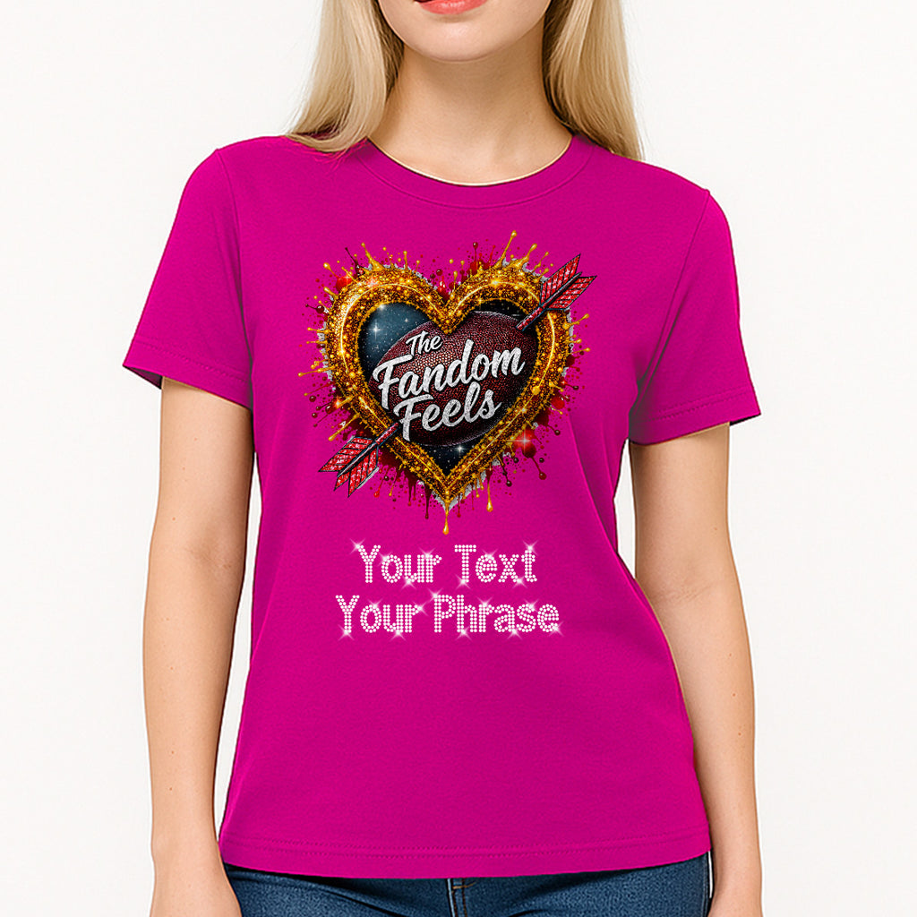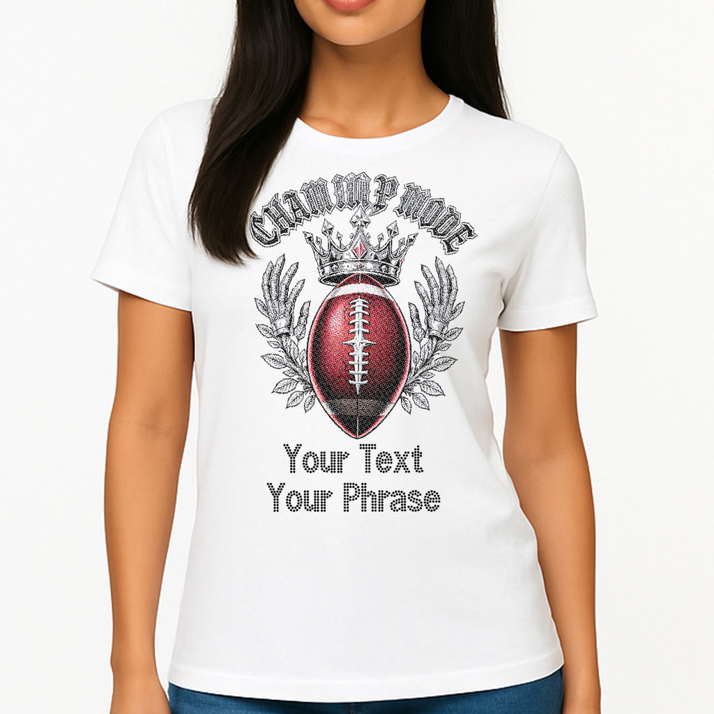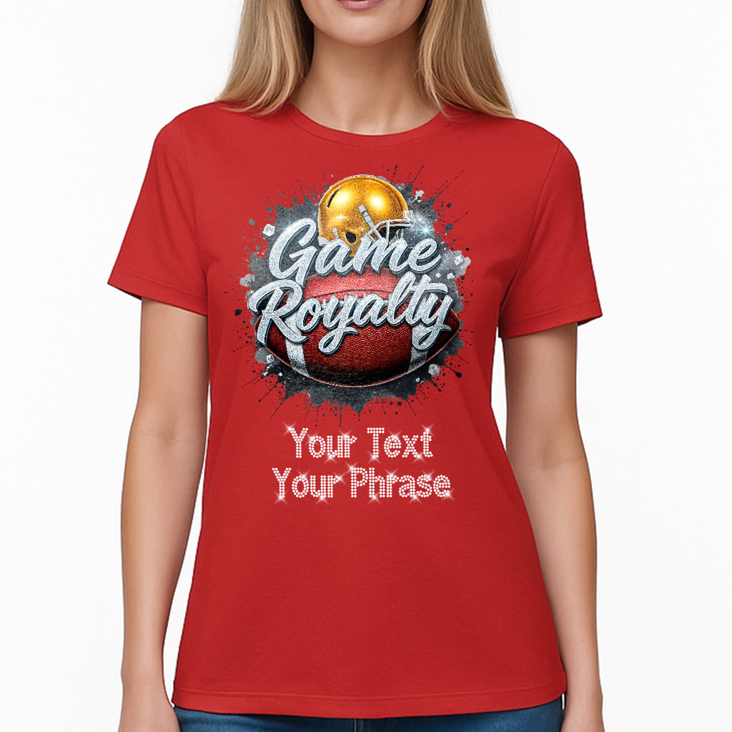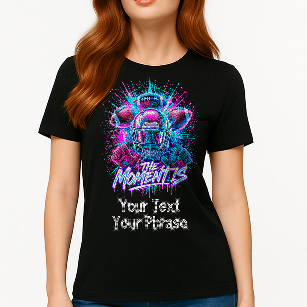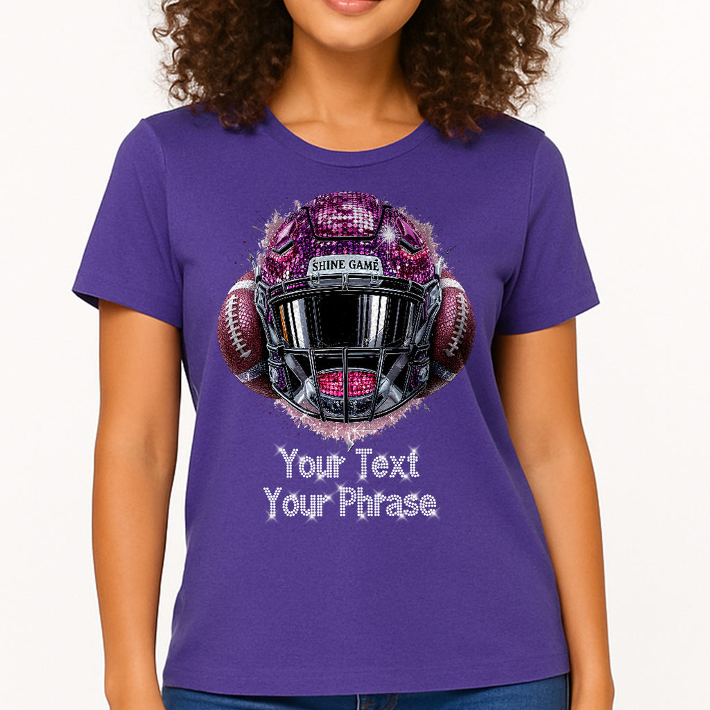 Custom Women's T-Shirt - Football DTF Print with Personalized Rhinestone Text