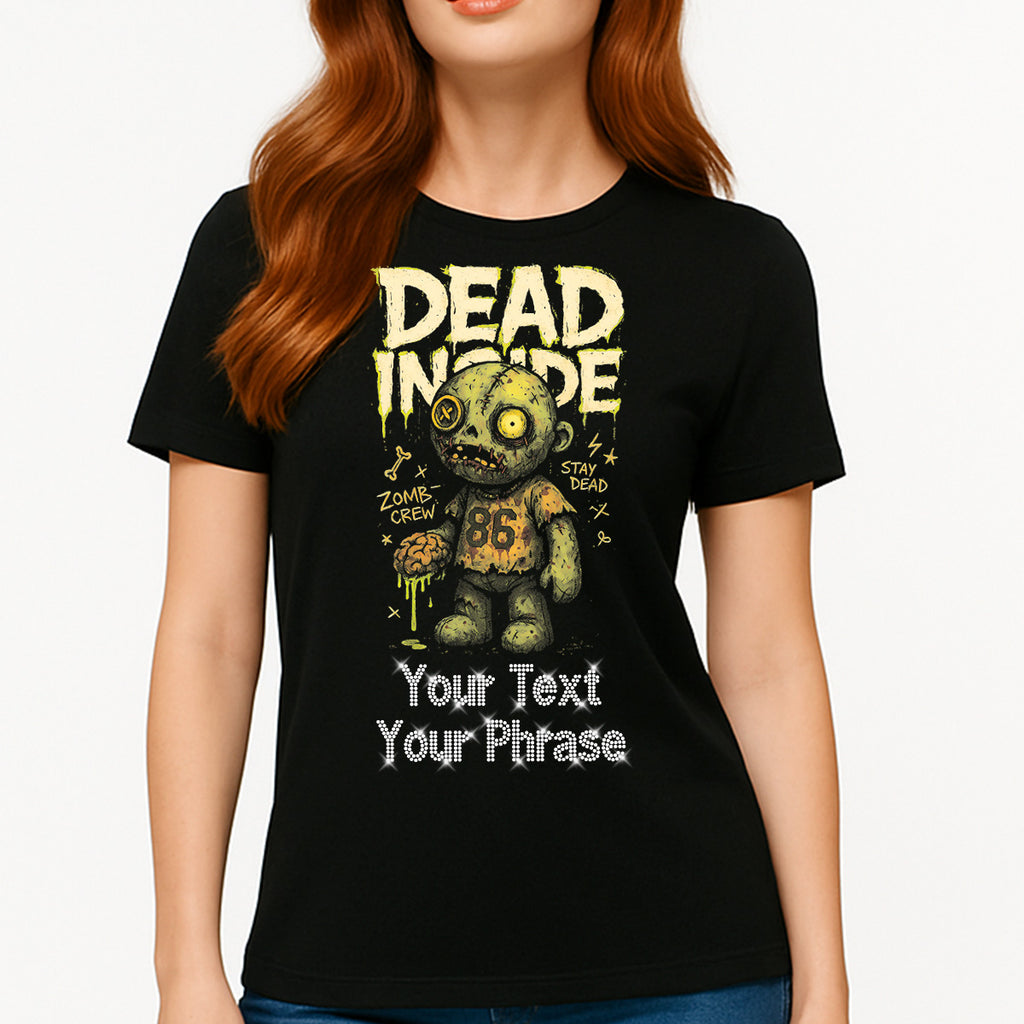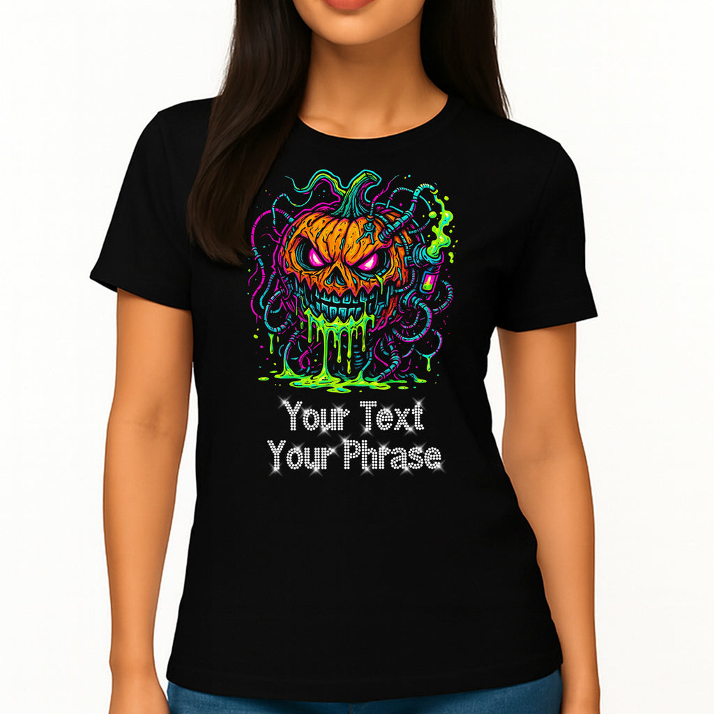 Custom Women's T-Shirt - Halloween DTF Print with Personalized Rhinestone Text