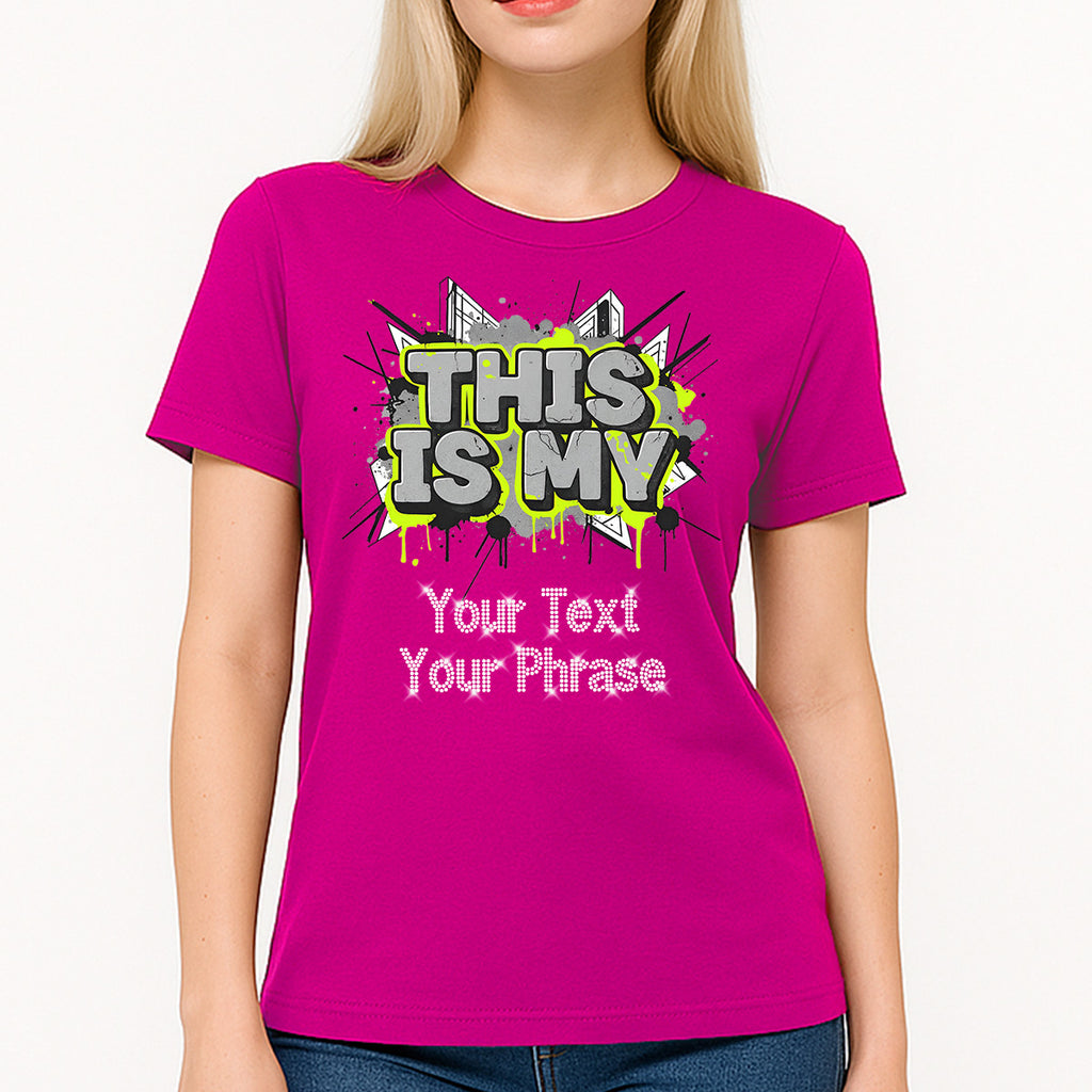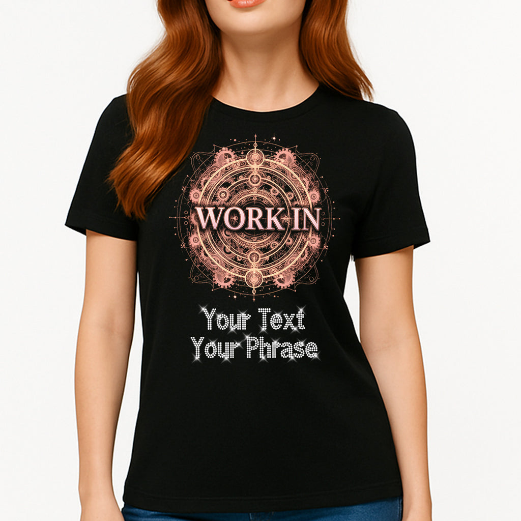 Custom Women's T-Shirt - Leisure DTF Print with Personalized Rhinestone Text