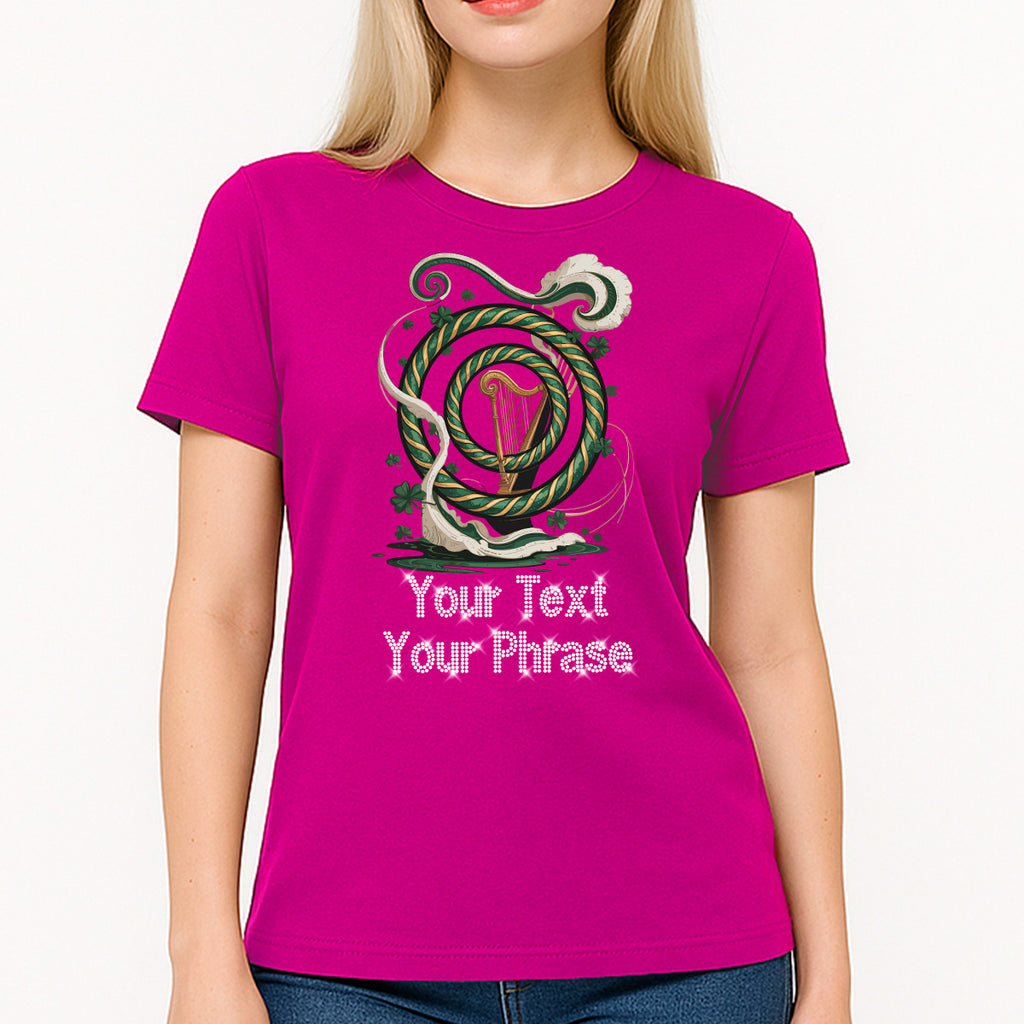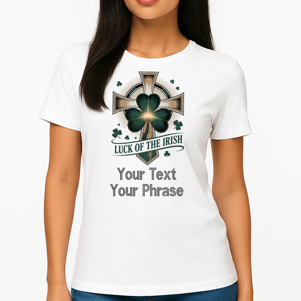 Custom Women's T-Shirt - St. Patrick’s DTF Print with Personalized Rhinestone Text